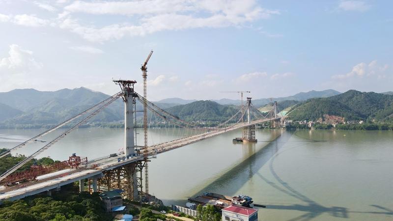 苍容浔江大桥是苍容高速全线关键控制性工程,随着主缆缠丝全部完成,大桥将进入检修道安装、主缆防腐作业阶段。